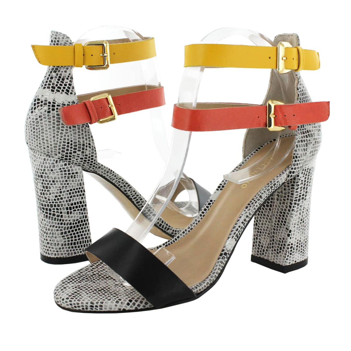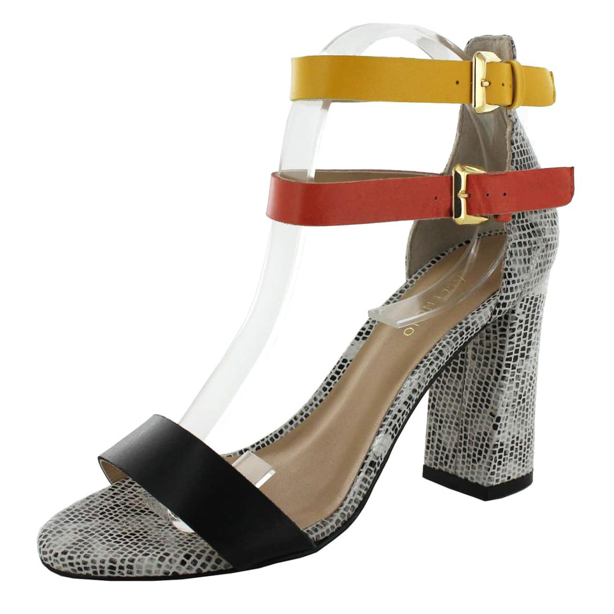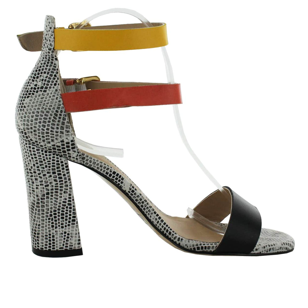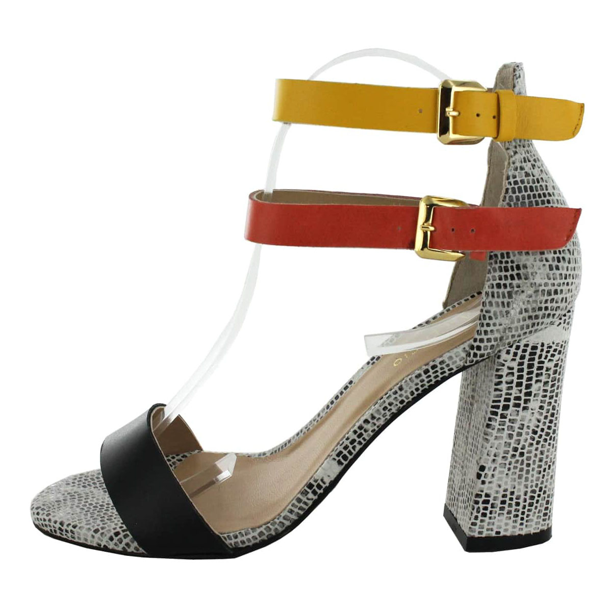 Calzado tipo Sandalia con Tacón, Corte en Piel lisa y tacón de 9 cm, suela de hule.