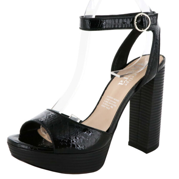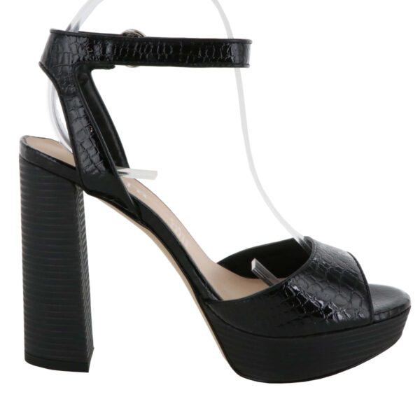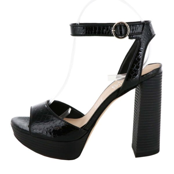 Calzado tipo Sandalia con Tacón, Corte en charol con grabado y tacón de 12 cm, suela de hule.
