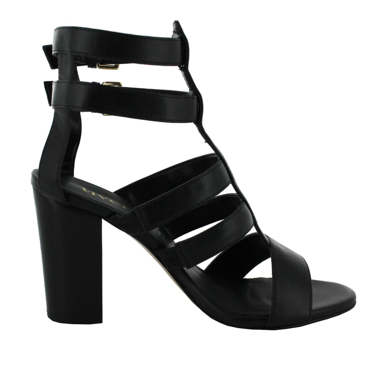 Calzado tipo Sandalia con Tacón, Corte en piel lisa y tacón de 9 cm, suela de hule.